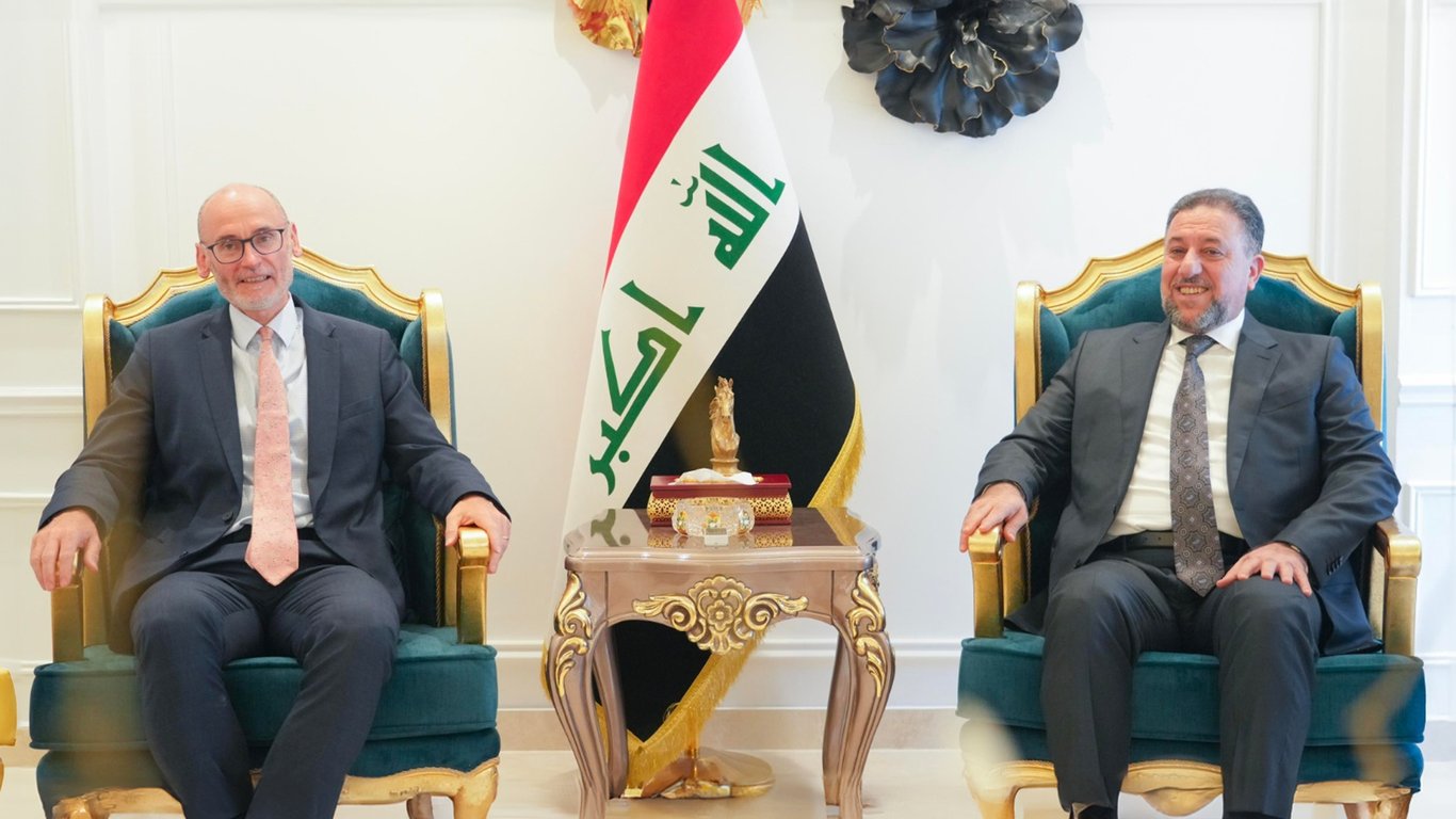 رئيسُ حزبِ السيادةِ الشيخُ خميسُ الخنجرِ يستقبلُ السفيرَ البريطانيّ لدى العراقَ ستيفن هيتشن ببغدادَ