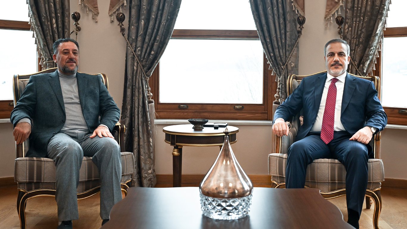 وزيرُ الخارجيةِ التركيّ هاكان فيدان يستقبلُ رئيسَ حزبِ السيادةِ الشيخَ خميس الخنجر في أنقرةَ