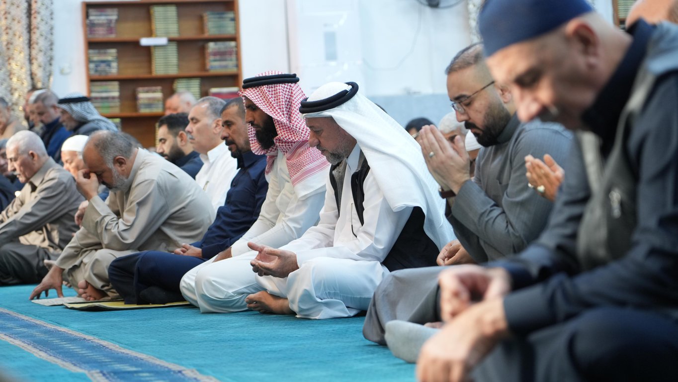 الشيخُ خميسُ الخنجر يؤدي صلاةَ العشاءِ في جامعِ سارية بديالى ويترحمُ على الشهداءِ