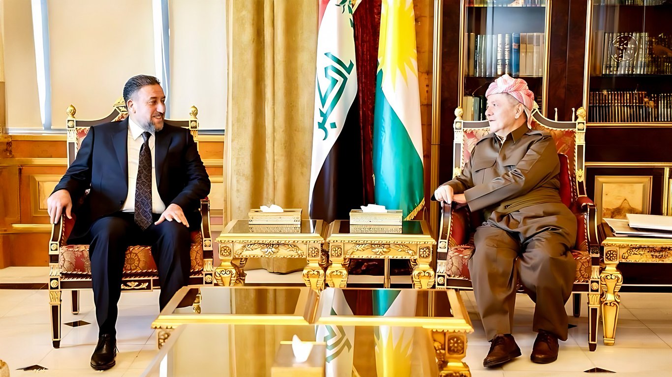 الرئيسُ مسعود بارزاني يستقبلُ الشيخَ خميسَ الخنجر في أربيلَ