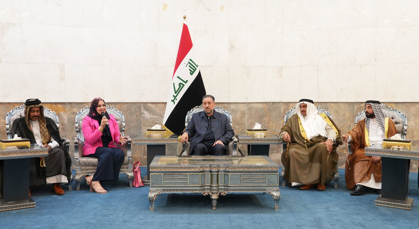 الشيخُ خميس الخنجر يستقبل الأستاذة ابتهال الدايني وجمعًا من شيوخ ووجهاء ديالى